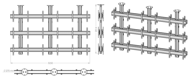 Multiscreen TV-Deckenhalterung „TA-E-(3x3) (Single Side)“