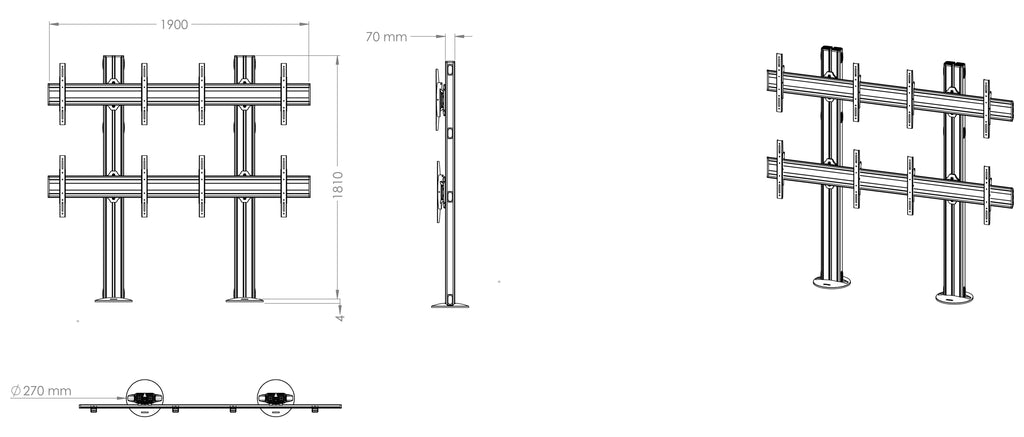 Multiscreen TV-Standfuß „Fix-(2x2)“ (Single Side)